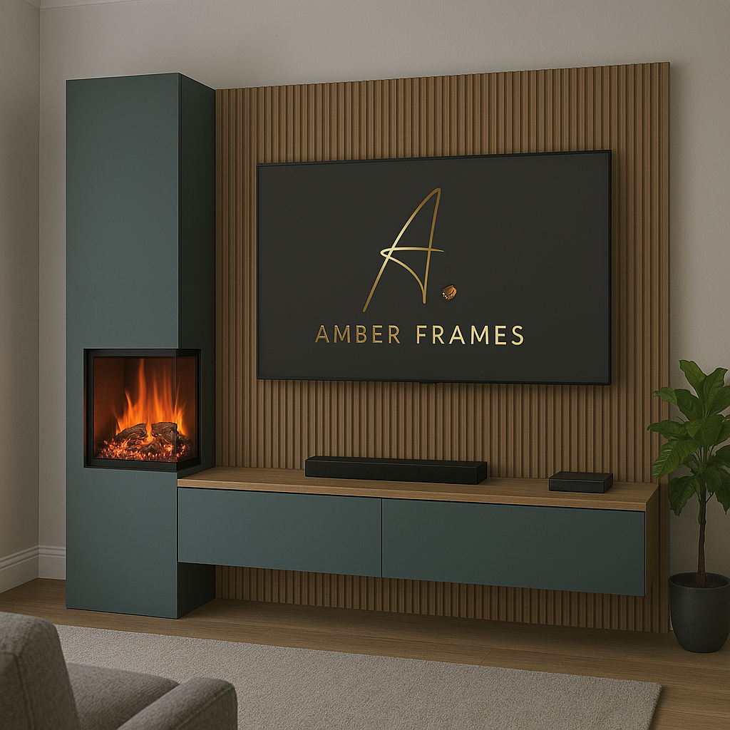 At Amber Frames, we design and manufacture high-end modular media walls, TV units, and electric fireplace feature walls across the UK. Using premium materials like Egger MFC and painted MDF, our team delivers refined, made-to-measure living room solutions — trusted by homeowners and developers alike.